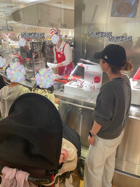 お土産屋さんはとても狭く、人が多かったです。なのでバギーに乗っている娘は入れず…。