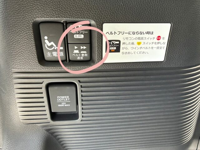 助手席側にあるスイッチで電源を入れて引き上げてもらいます。