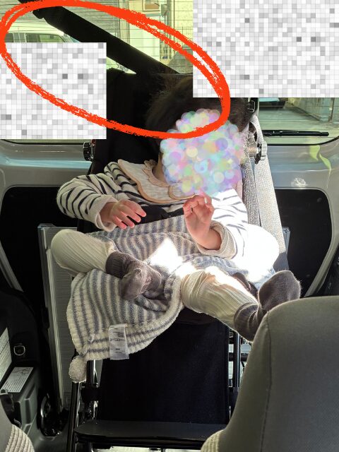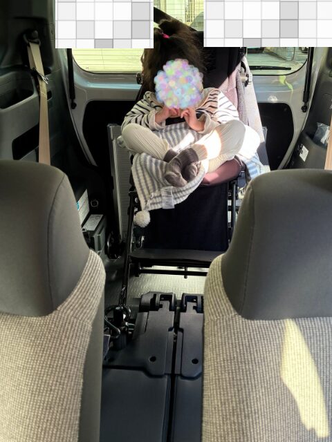 普段、家族でお出かけのときはファミリーカーに乗っています。娘は障害児用のカーシートに座って障害児バギーを積んでお出かけしています。
