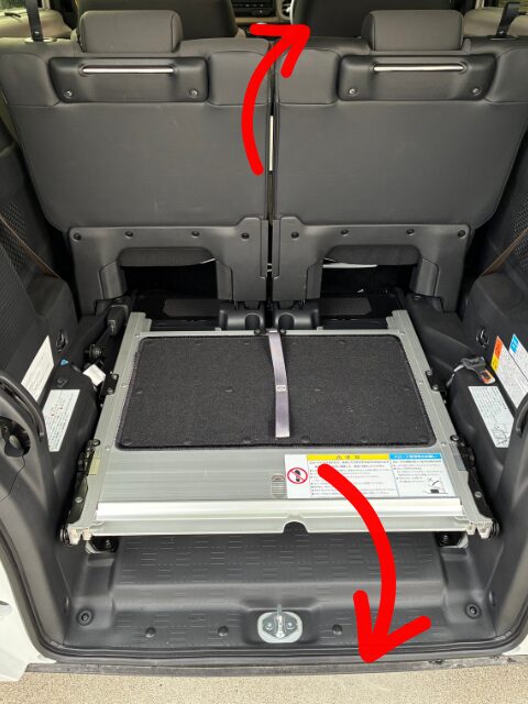 2列目のシートを運転席側に倒すと車いすが乗るスペースができます。