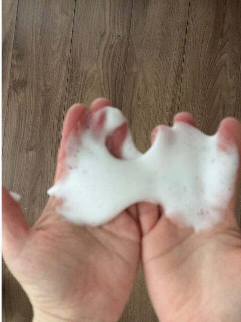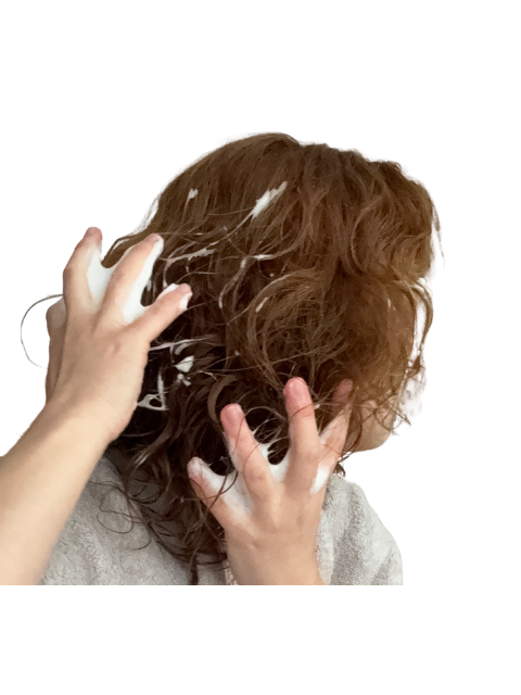 両手にたっぷり泡を乗せて毛先を揉み込むように付けていきましょう◎