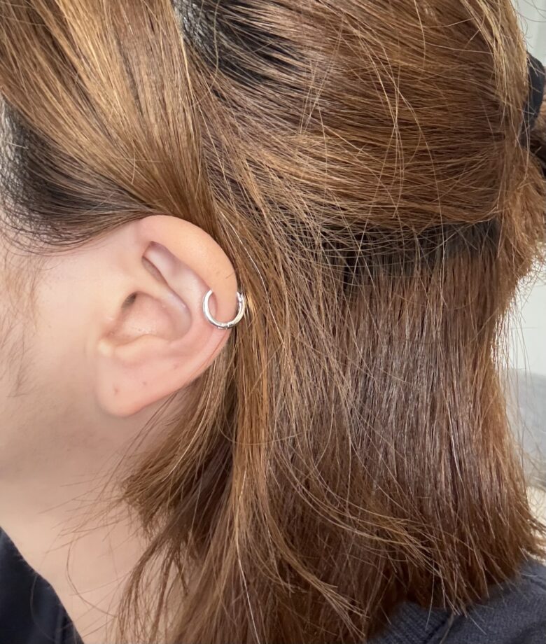 ピアスを左耳にずっとつけっぱなしにしているので、そこを出すためにあえて分け目を無理やり左分けにしています◎
